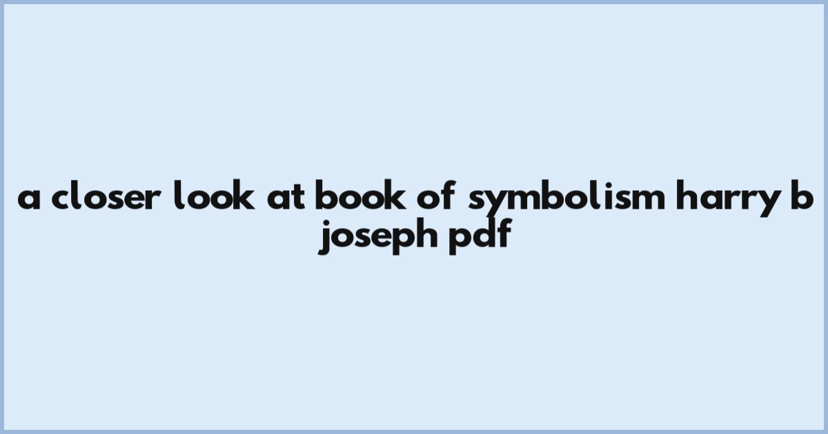 A Closer Look At Book Of Symbolism Harry B Joseph Pdf
