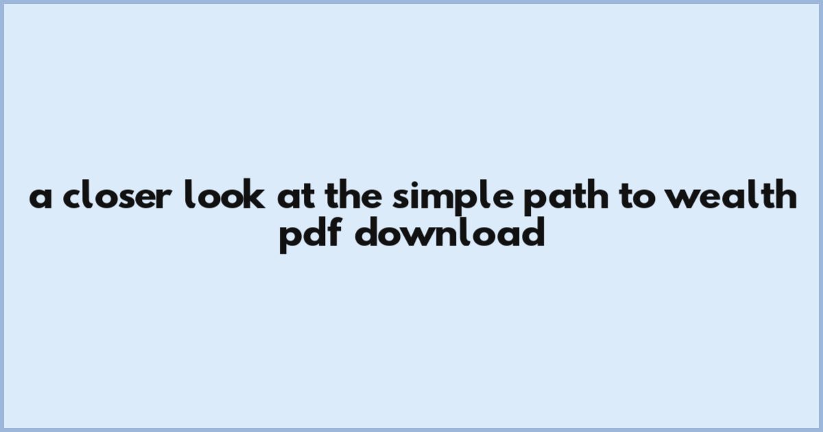 A Closer Look At The Simple Path To Wealth Pdf Download
