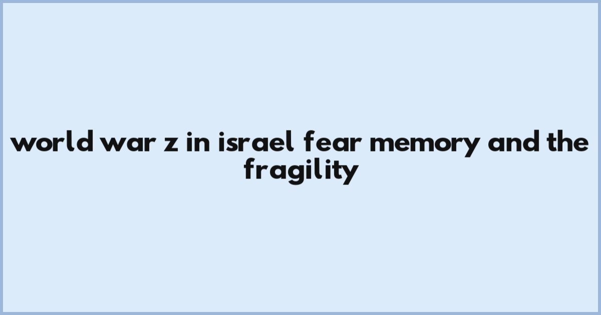 World War Z In Israel: Fear, Memory, And The Fragility